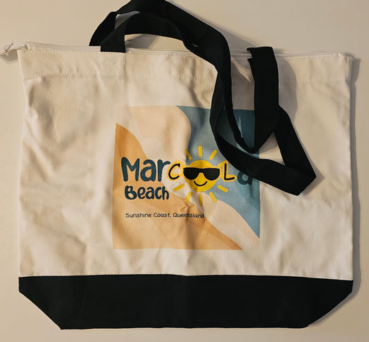 Marcoola Beach merchandise - Canvas beach bag/ tote bag with zip