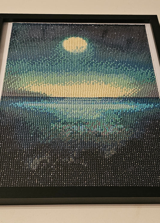 Groovy baby framed artwork - Moonrise over the ocean