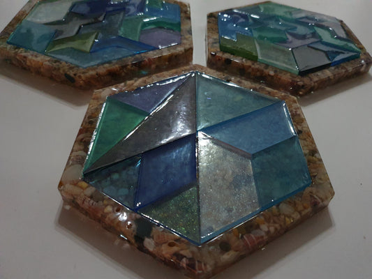 Geometric heart magnets in ocean tones