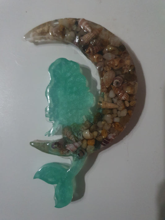 Window decoration - translucent mermaid on seashell moon